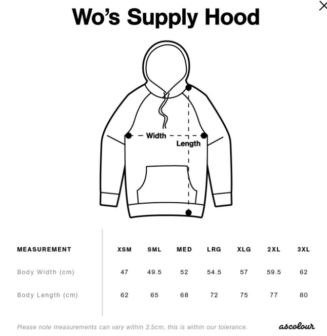 | Body Width (cm) | 47 | 49.5 | 52 | 54.5 | 57 | 59.5 |